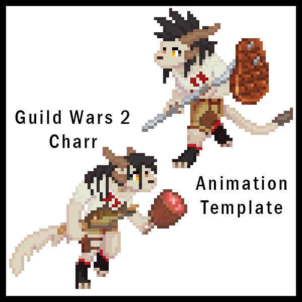 This is a template for personal-made Guild Wars 2 Charr Walking Animation pixel art. It is usable only on Aseprite, not Photoshop or any other program.